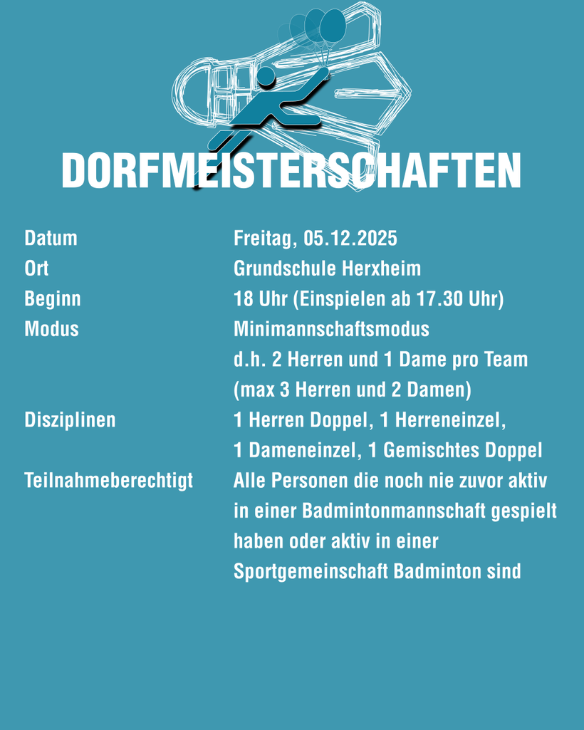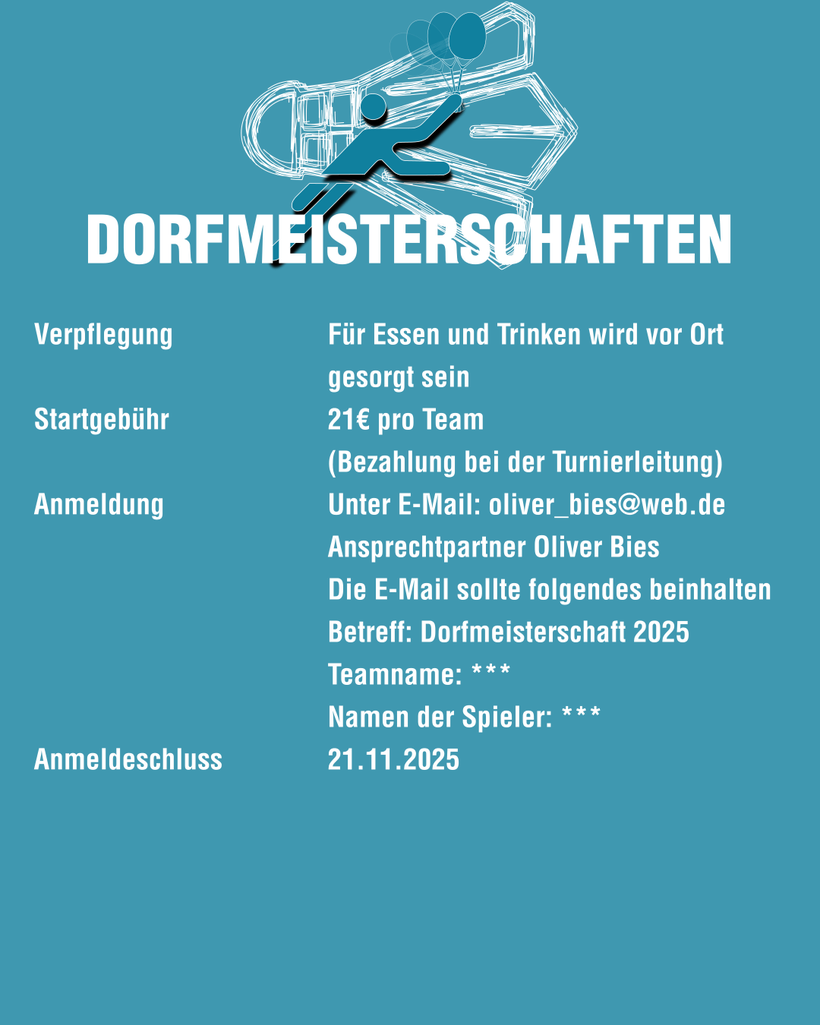 Wir haben einen neuen Termin gefunden. Die Dorfmeisterschaften 2025 werden am Freitag 05.12.2025 stattfinden.